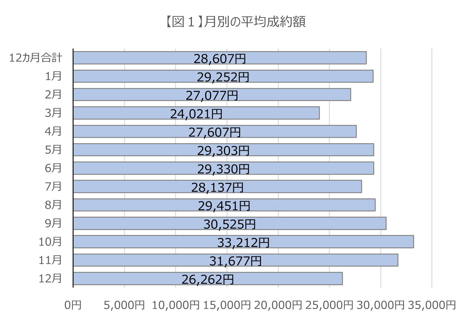 月別では3月が24,021円で最安。次点が12月で26,262円。
