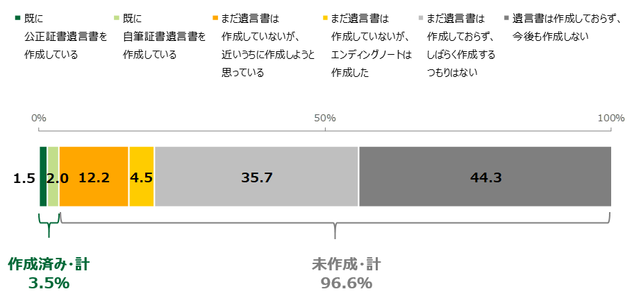 Q.あなたは現在、ご自身に万が一のことがあった時のために、財産の相続に関して遺言書を作成