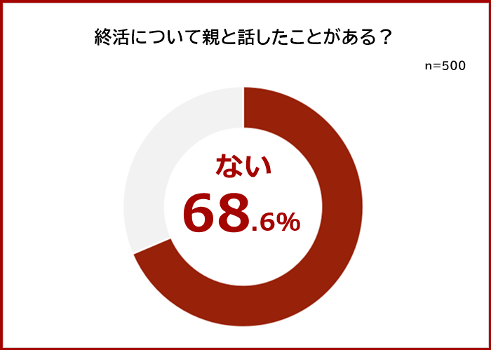 「終活について親と話したことがあるか」と聞いたところ、「ない」と回答した人が68.6%と7割近くにのぼりました。