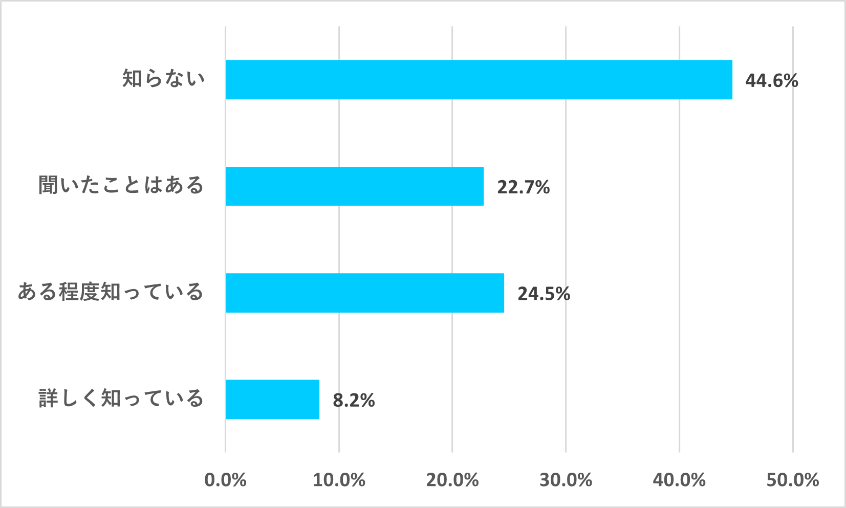 また、ガイドラインが発表されたことについては、44.6%の方が存在を知らないと回答しており、詳しく知っている人は8.2%にとどまっています。