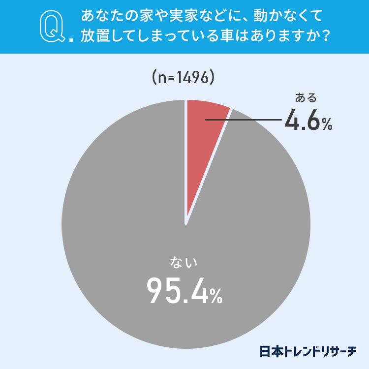 4.6%が、家や実家などに「動かなくて放置してしまっている車がある」と回答しています。