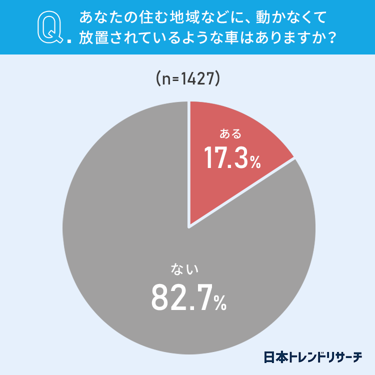 17.3%の方が、住む地域などに放置車が「ある」と回答しました。