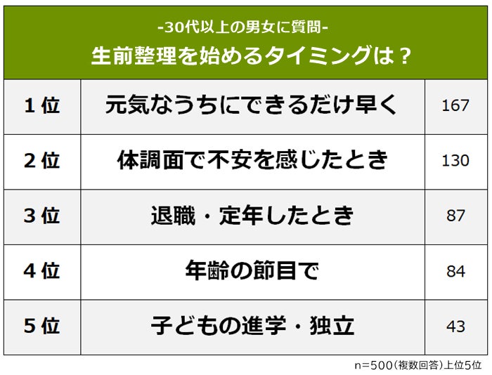生前整理を始めるタイミングは「元気なうちにできるだけ早く」
