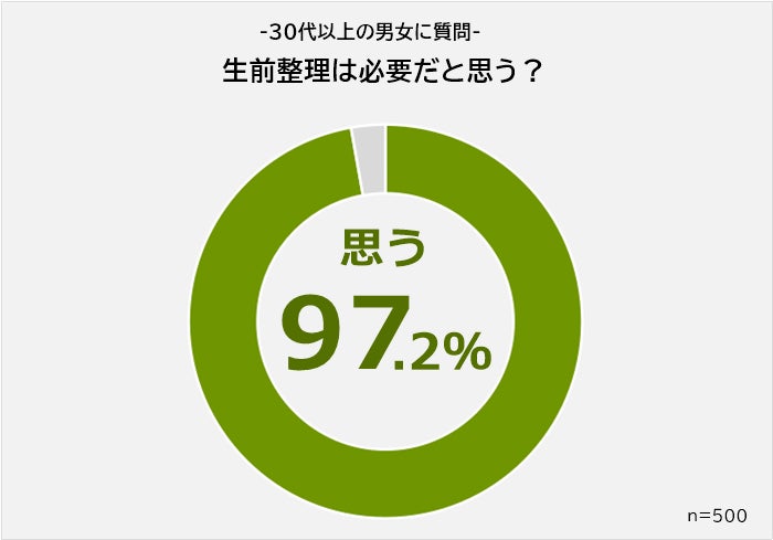 30代以上の男女500人に「生前整理は必要だと思うか」と聞いたところ、97.2%が「必要だと思う」と回答しました。