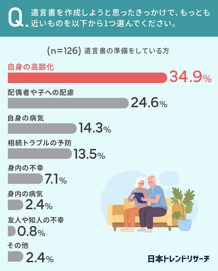 「自身の高齢化」が34.9%、「配偶者や子への配慮」が24.6%という結果になりました。