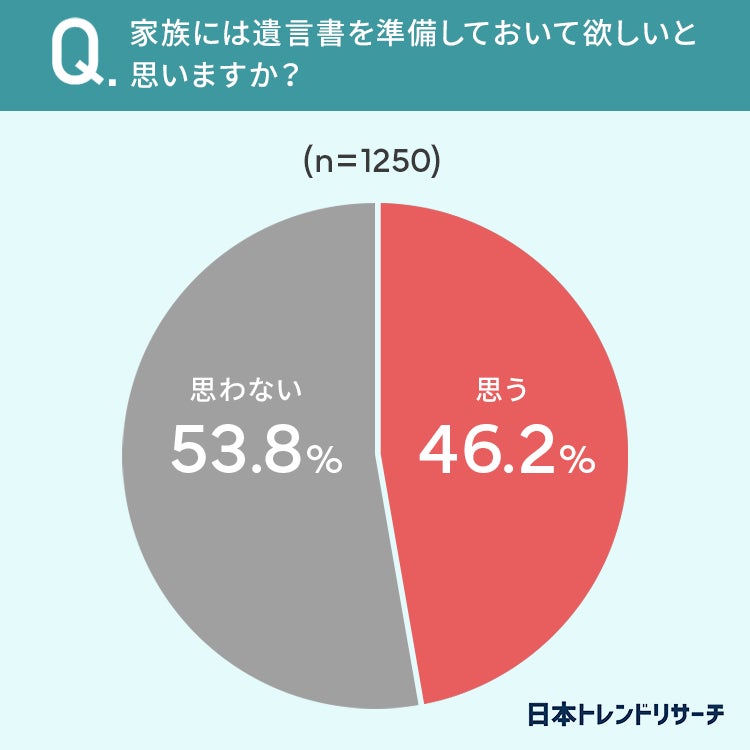 ■46.2%が家族には遺言書を準備しておいて欲しいと「思う」