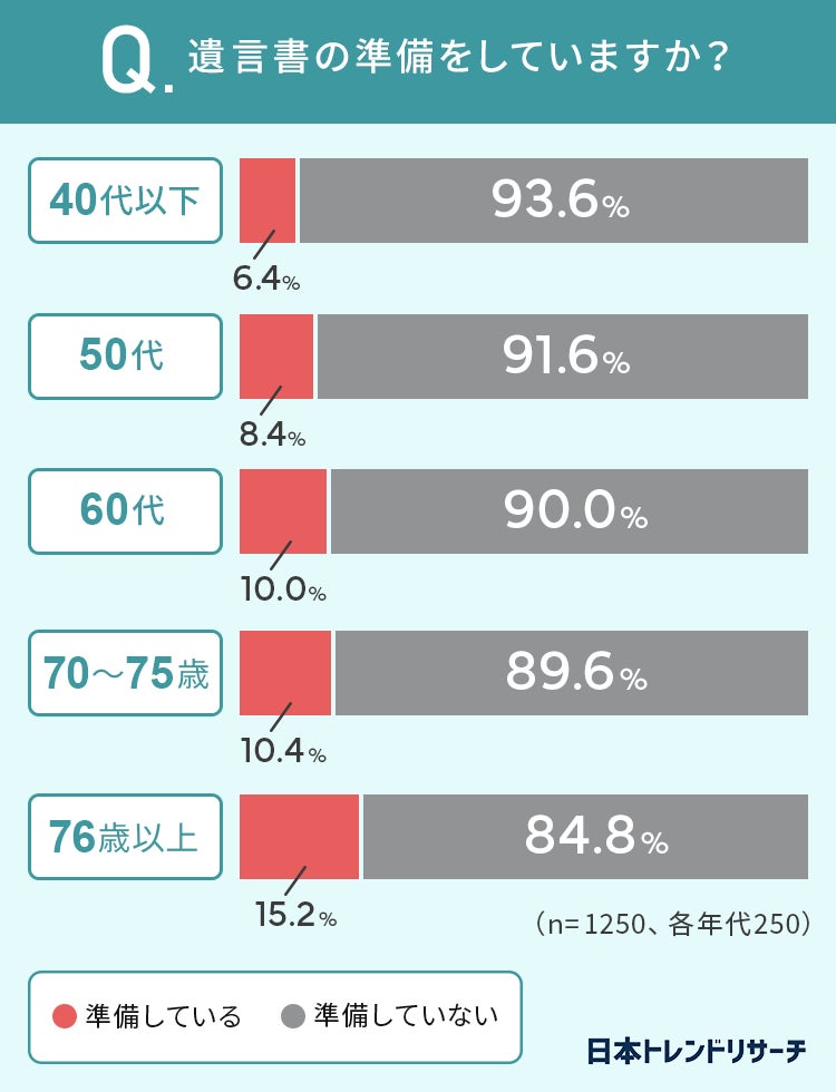 そこで今回は株式会社ニーズ・プラスと共同で、全国の男女1250人を対象に「遺言書の準備」についてのアンケートをおこないました。