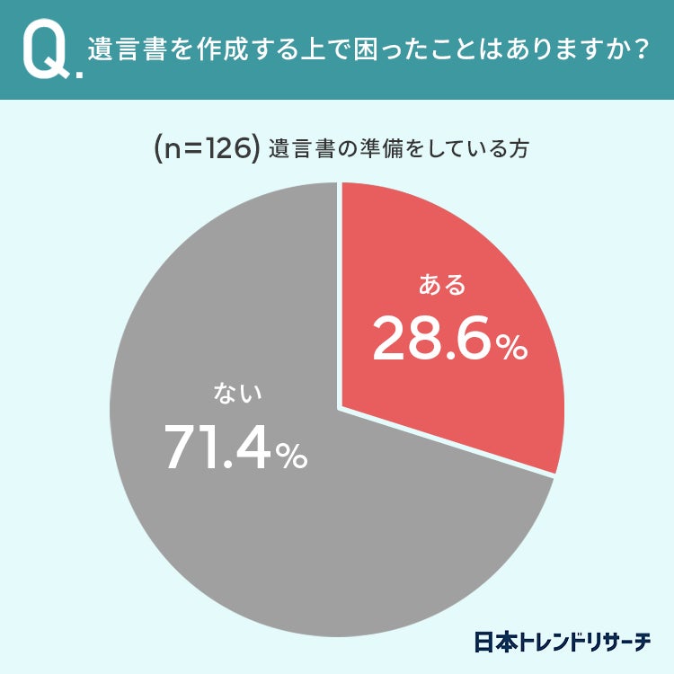28.6%と、3割近くの方が遺言書を作成する上で困ったことが「ある」と回答しています。