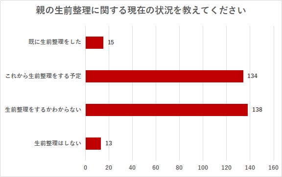 先ほどのアンケート結果で、親に生前整理をしてほしいと思っている子どもは全体の約8割にのぼることがわかりましたが、実際に今どのような状況にあるのでしょうか。