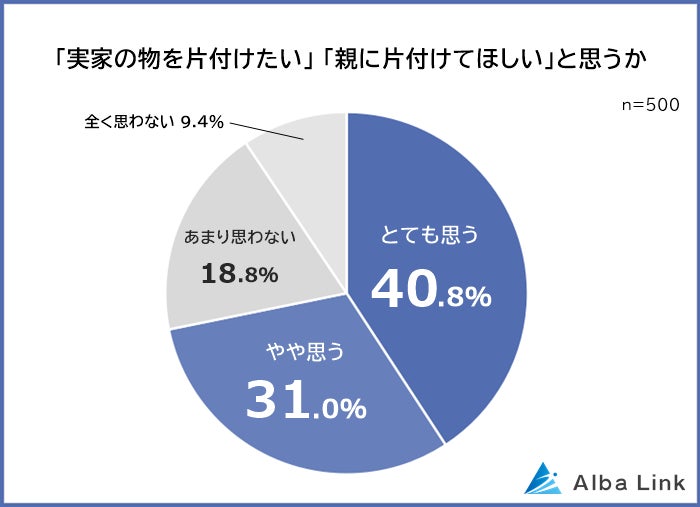 今回、株式会社AlbaLinkが運営する訳あり物件買取プロは、実家がある男女500人を対象に「物が多い実家の片付け」についてアンケート調査を実施しました。