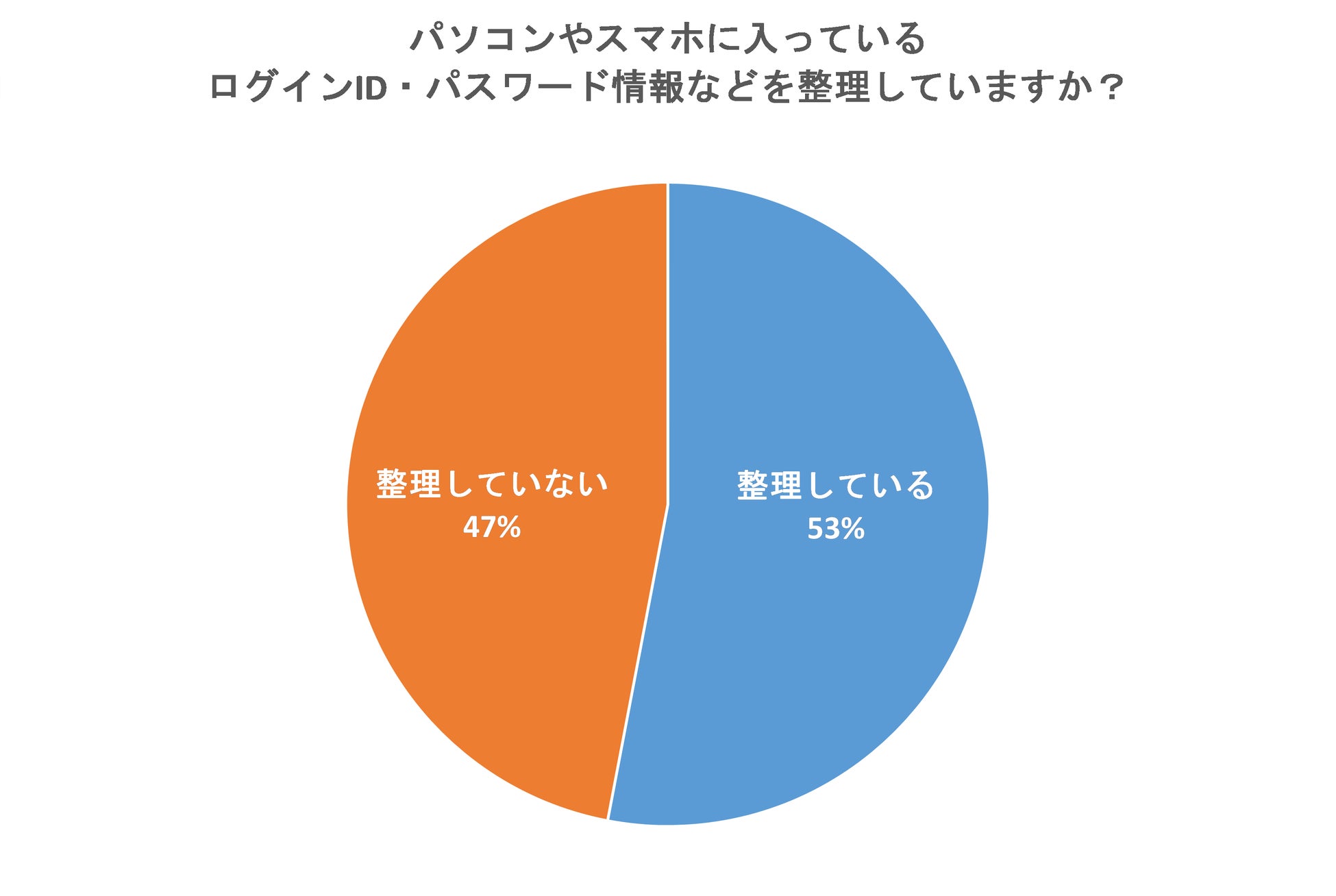 「パソコンやスマホに入っているログインID・パスワード情報などを整理していますか?」という質問では、53%の「整理している」と47%の「整理していない」が拮抗する結果になりました。