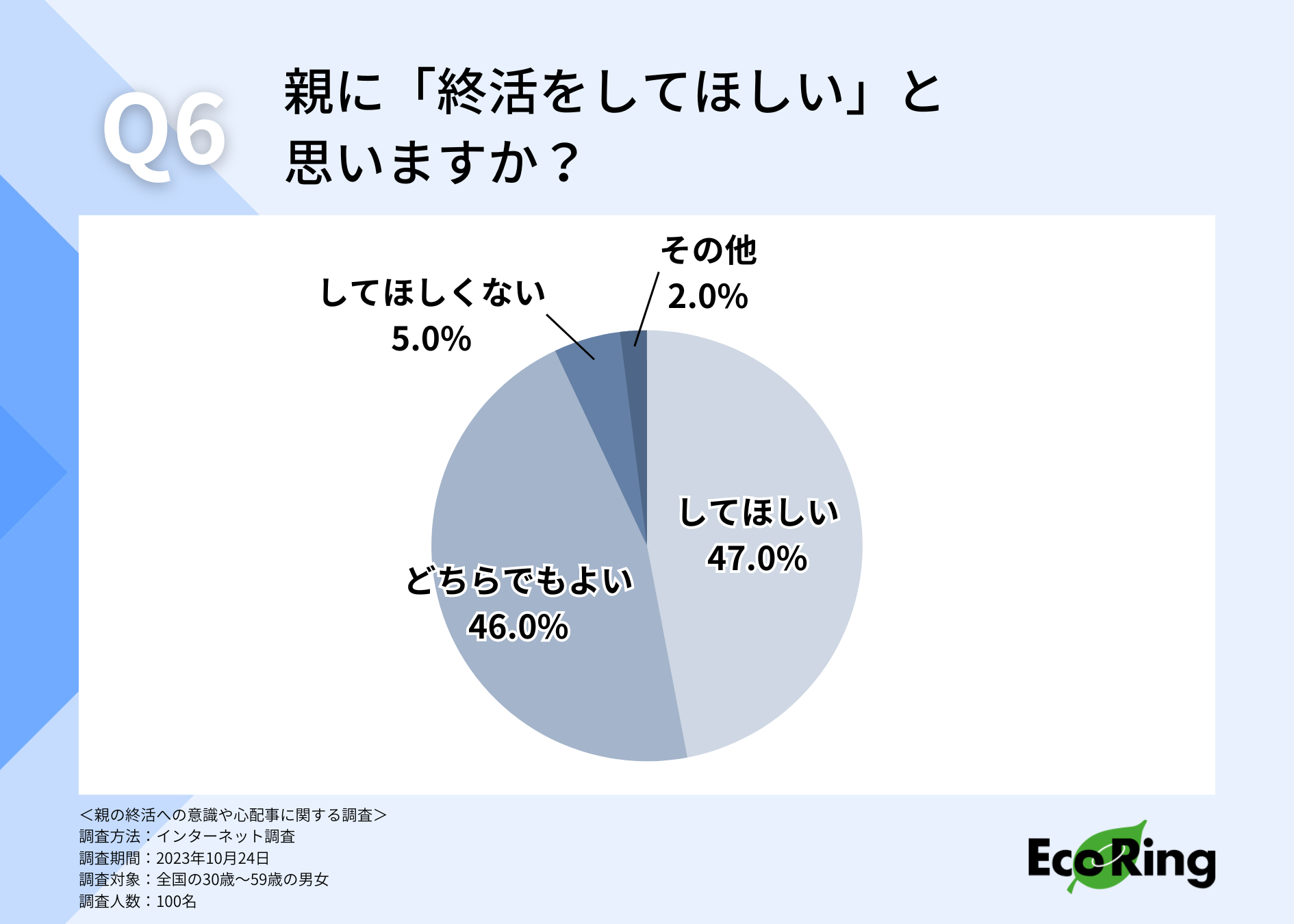 ここまでの回答も踏まえて、親に「終活をしてほしい」と思っているか伺ったところ、約半数の方が「してほしい(47.0%)」と回答しました。