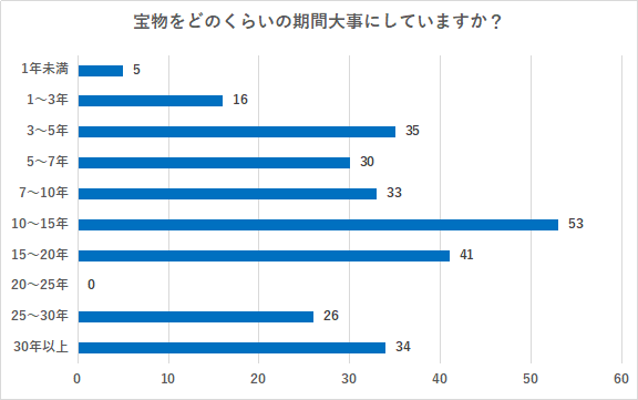 結果として、宝物を「10~15年」大事にし続けている方が多い結果となりました。