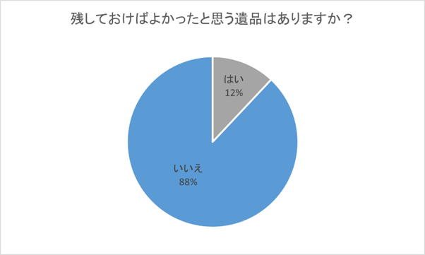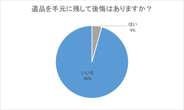 「遺品を手元に残して後悔はありますか?」という質問では、「いいえ」が全体の9割以上を占める結果でした。