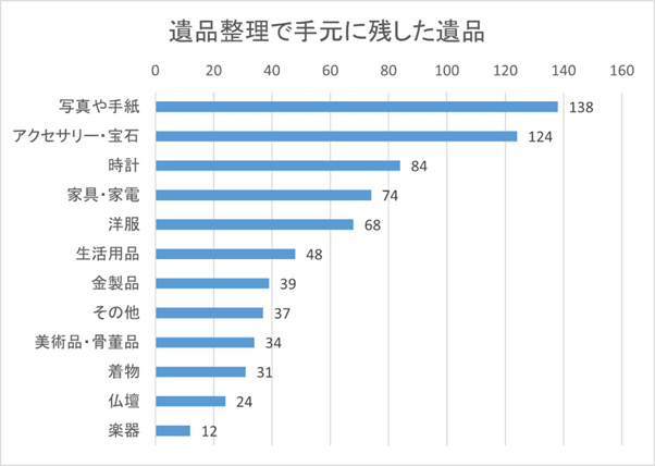 遺品整理で手元に残した遺品をお聞きしたところ、「写真や手紙」が138票と最多でした。